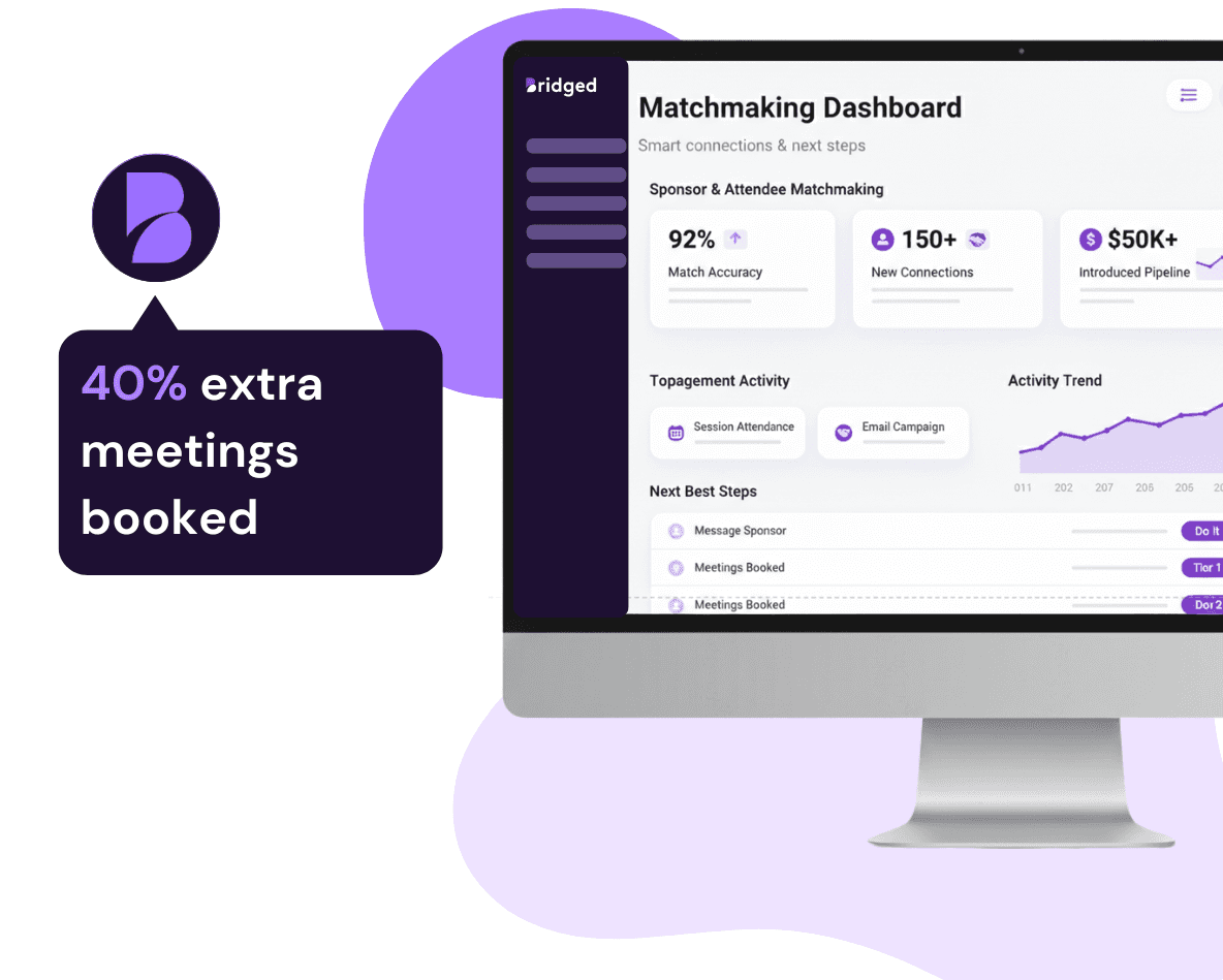 Guide decisions while people explore sessions, sponsors, and upgrades, capture preference signals, and route each person to the next best step.
