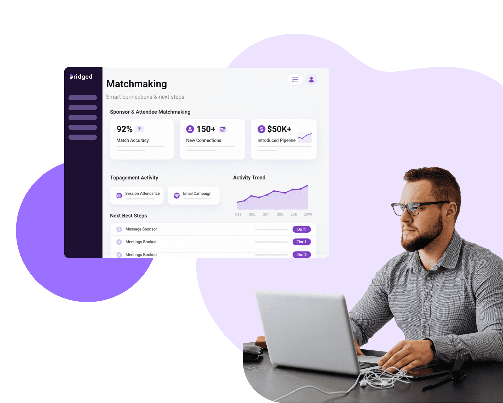 Use profile and behavioural intent signals to recommend the right sessions, tracks, workshops, and networking opportunities while improving sponsor relevance through higher-fit audience matching.