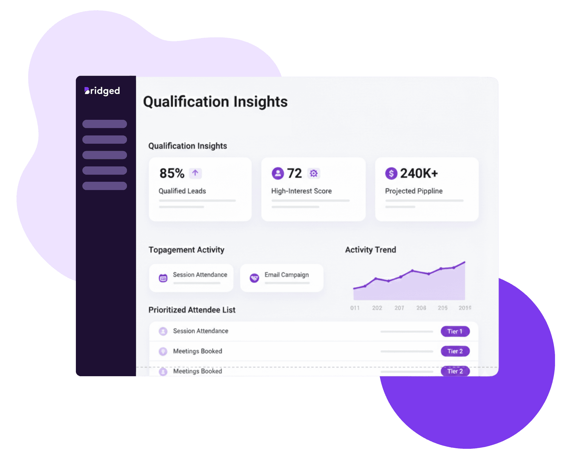 Drive more attendees to log in, build agendas, explore sessions, and engage with pre-event content so they arrive better prepared and more likely to convert on high-value offers.